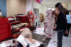 参加者は、#振袖gram那覇店が用意した多数の華やかな振袖の中から自分に最も似合う一着を選び、プロのヘアメイクにより特別な装いへと変身。