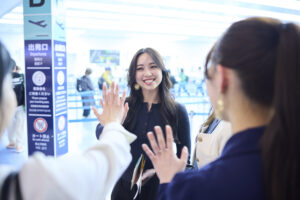 ミスプラネットジャパン2025の日本代表に選ばれた杉山佳穂さんは、3月6日(木)夜、世界大会に出場するため日本を出発した。羽田空港には、同大会のファイナリストや関係者、メディアやファンなどが駆けつけ、杉山さんの門出を温かく見送った。